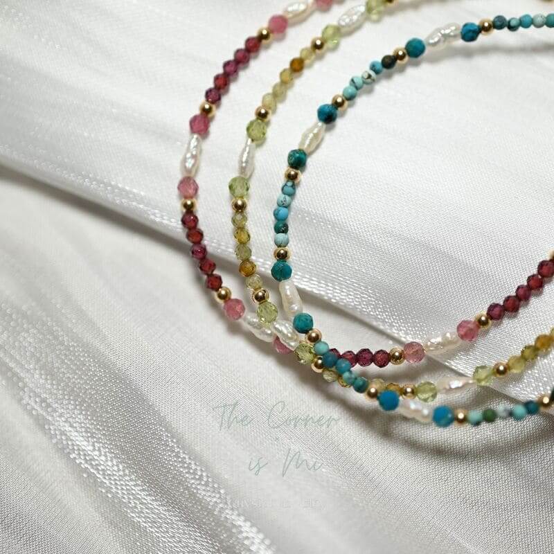 一串細緻而靈動的彩珠,如晨光灑落於法國鄉村小徑,微風拂過心湖,帶來日常的小小喜悅。
